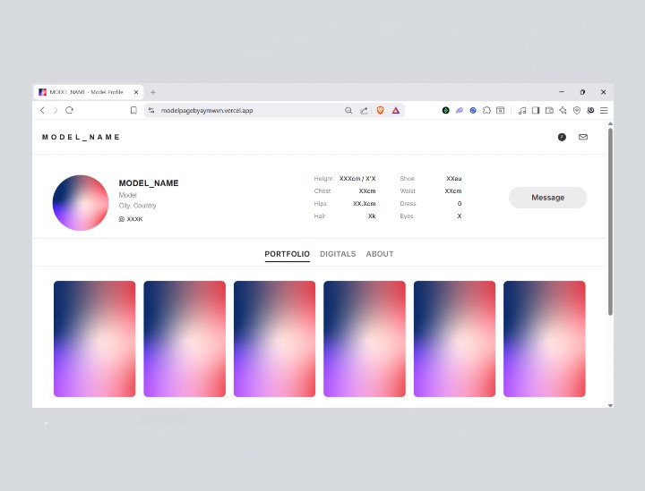 A Simple Model page that showcases a detailed model with structured information, visuals, and key features, providing a clear and organized view for users.